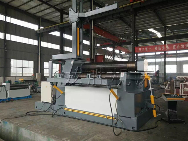 該機優點是板材端部預彎及卷圓可以在同一臺設備上進行。